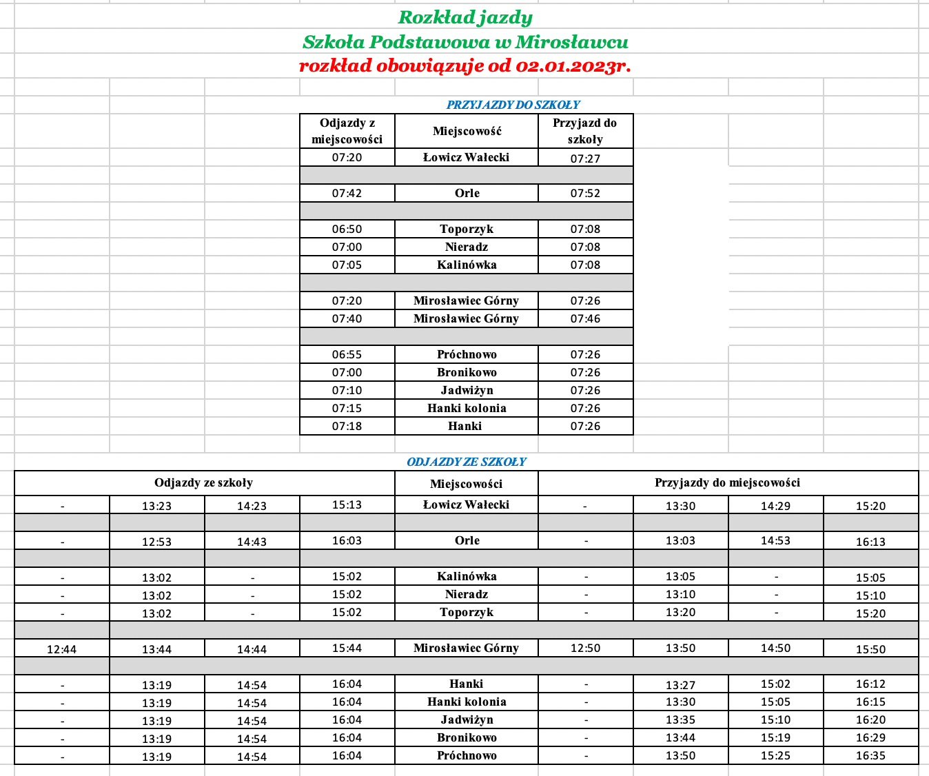 Rozkład jazdy do SP Mirosławiec